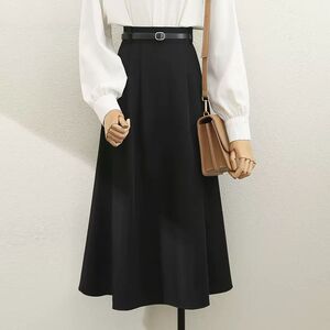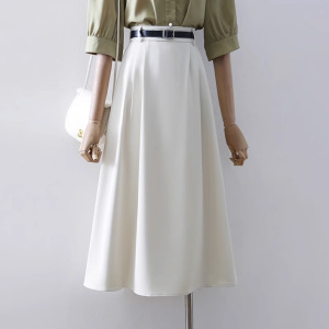 2025 春と秋の女性のハイウエスト通勤プロフェッショナルオフホワイト A ラインスカート女性のドレープスカート小柄な人向け