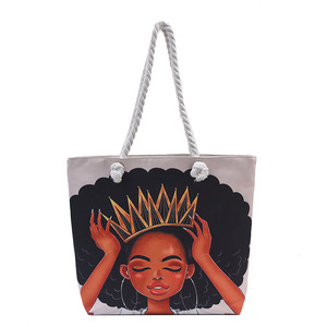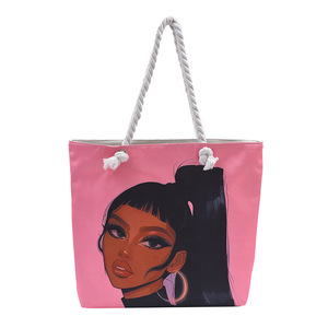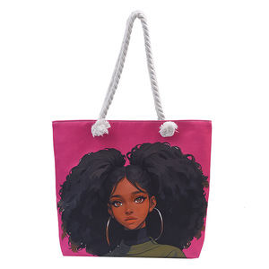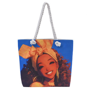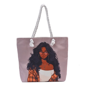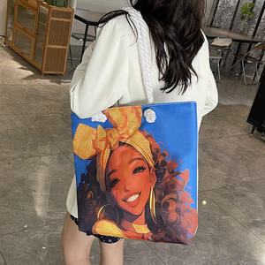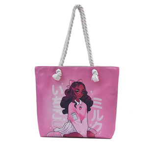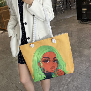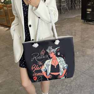 2025 クラシックアウトドア実用的な多用途レトロキャンバスバッグ漫画プリントポータブルビーチバッグ大容量