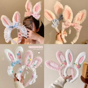 かわいいリボンウサギの耳ぬいぐるみヘッドバンドレース洗顔ヘッドバンド子供用ヘアピン 2025 新しい帽子