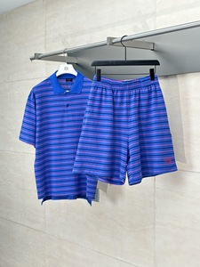 パリの正しいバージョン B 新しいダブル B 小麦ストライプ刺繍カジュアルルーズスーツ半袖ショーツ男性と女性用