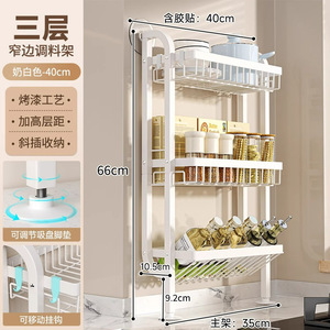 [40cm] ミルクホワイト - 3層超ナロースパイスラック (粘着シート*2+吸盤足*2+フック*2を含む)