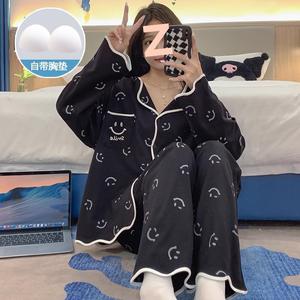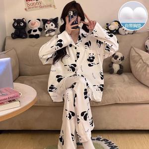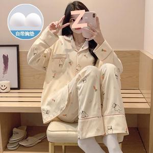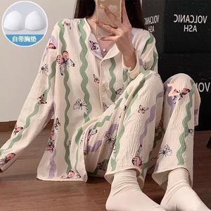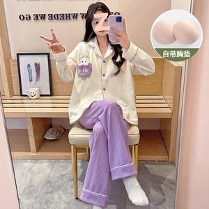 春と秋の女性用パジャマ、胸パッド付き長袖ズボン、膨らみ防止スーツ、冬と夏の女性のかわいい漫画のホーム服