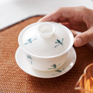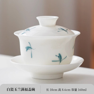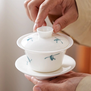 羊脂白磁手描き蓋ボウルティーカップシングル高級家庭用ティーボウルカンフーティーカップ特別なティーセット大サイズ