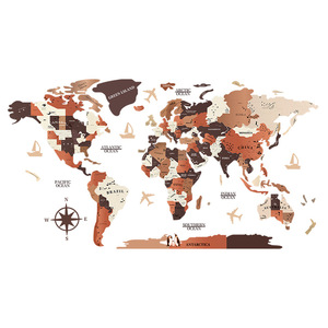 ソース工場北欧 3D 立体無垢材カラー世界地図壁装飾クリエイティブリビングルームソファ背景壁画
