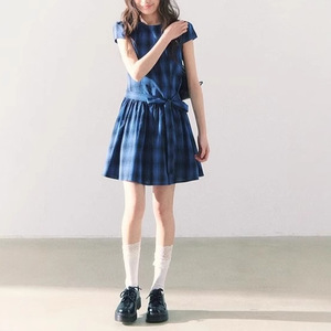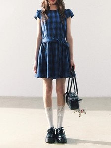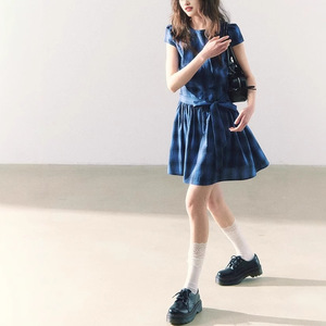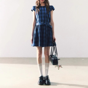 缶詰 Shiduose スカート レディース 2025 夏 スイート ガーリー スタイル リボン ネイビー ブルー ドレス