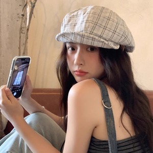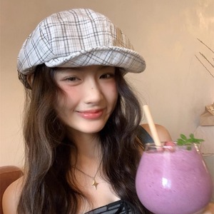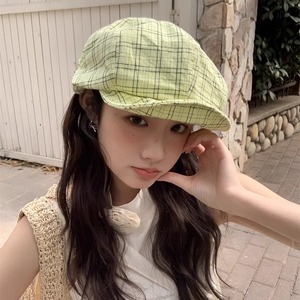 帽子レトロな新しい八角形の帽子女性のための軽くて薄い春と夏のチェック柄文学キャスケット帽子韓国のファッション画家の帽子トレンド