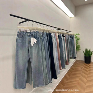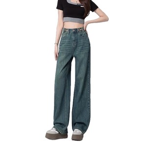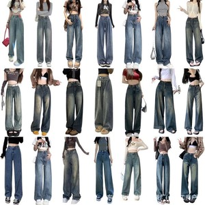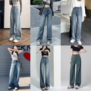 2025 春夏の新デニムストレートパンツ女性の韓国スタイルルーズワイドレッグ女性のデニムパンツ卸売