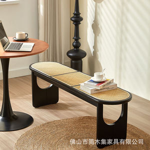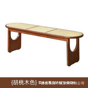 北欧無垢材籐靴交換スツールロングベンチ和風ログスタイルダイニングテーブルと椅子ホームエントランスレトロベッドサイドスツール