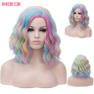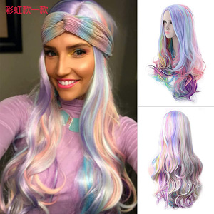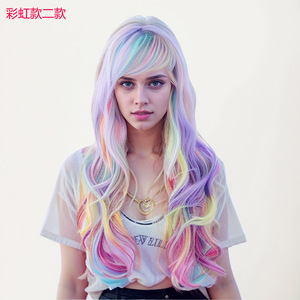 カラーウィッグ ロング巻き毛 全頭 欧米斜め前髪 マルチカラー ミックスカラー クリスマス ハロウィン クロスボーダーフェスティバルウィッグ