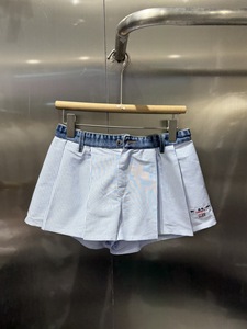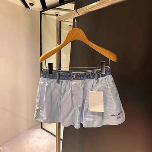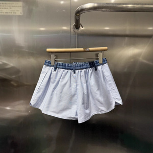 【在庫あり】2025春夏新作ニッチデニムステッチフェイクツーピースキュロットワイドレッグスリムAラインショーツ女性用