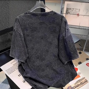 夏のアメリカの半袖の女性のtシャツは水洗いして古い重ポンドの純綿の大きいサイズのinsの潮流の欧米の高い街の半袖の上着を作ります。
