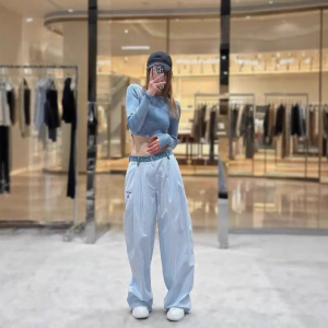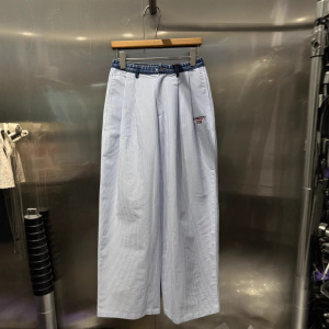 【在庫あり】2025春夏新作デニムパッチワークストライプ万能カジュアルパンツゆったりワイドレッグストレートパンツ女性用