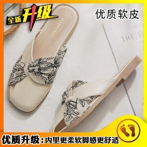 2025年夏の夕方風、ヒールなし、スタイリッシュ、ソフトソール、多用途、レトロな外出サンダル、Qu Jie
