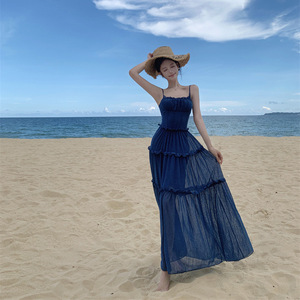 フランス式の優しい風のしわは腰のワンピースを収めて痩せています。