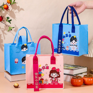2025卡通毛毡包周岁百日礼品袋大容量通勤托特包工厂批发手工周年