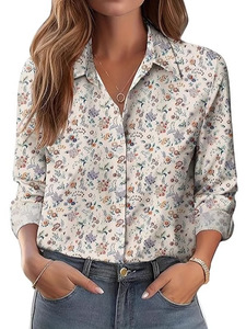 2025 春夏新作アマゾンクロスボーダーファッション婦人服ヨーロッパとアメリカの多用途プリントカジュアルラペル長袖シャツ