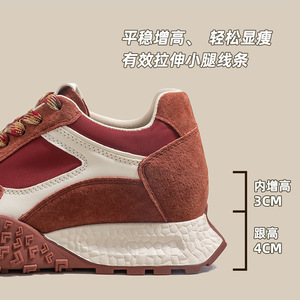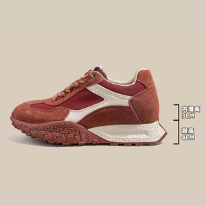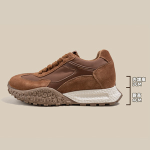【身長アップ7cm】初秋 本革 レディース 小柄 厚底 カジュアル 万能 快適 ドイツ訓練靴 010399
