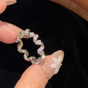 純銀s925高炭素ドリル電話紐指輪軽豪華小衆高級感食指戒ファッション個性指輪