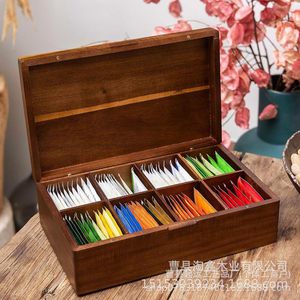 国境を越えた実木茶包収納箱分格レトロ家庭用茶葉木製包装箱多目的コーヒー収納箱