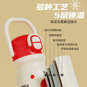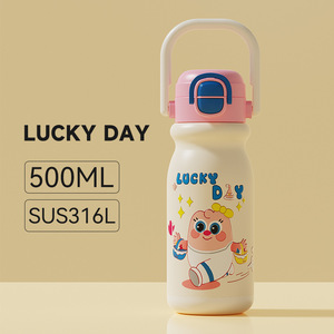 新しい316断熱カップ、見栄えの良い女の子用ウォーターカップ、漫画のかわいいポータブル子供用カップ、ダブルドリンクハンドル、ポータブルケトル