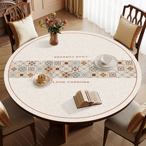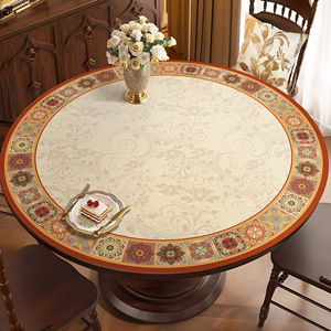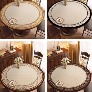 美式圆桌桌布氛围感皮革大圆形桌垫茶几防水防油免洗餐桌台布代发