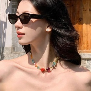 エスニックスタイルドーパミンカラービーズネックレス女性の海辺の雰囲気鎖骨チェーンニッチハイエンドネックレスアクセサリー