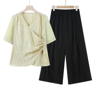 中年母親の夏半袖シャツスーツ2025新中高年女性シャツTシャツカジュアルスーツ