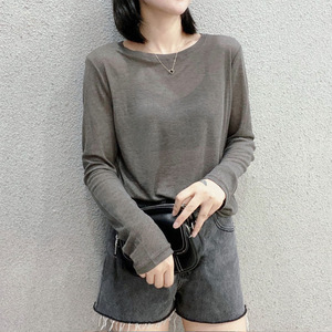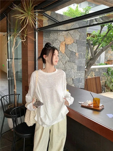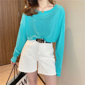 薄い氷の糸の日焼け止めのブラウスの夏の新型の怠惰な長袖のエアコンのtシャツはゆったりとしています。