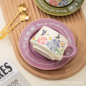 レトロ油絵コーヒーカップ皿セット陶磁器マグカップ小衆カップルカップ蝶コーヒーカップ皿ギフトボックス
