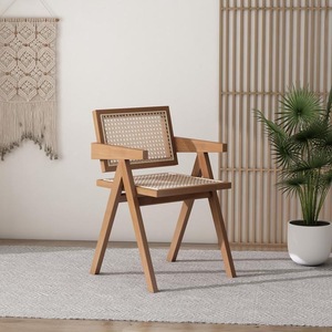 法式复古风餐椅家用餐厅单人沙发椅子网红设计师款中古昌迪加尔椅