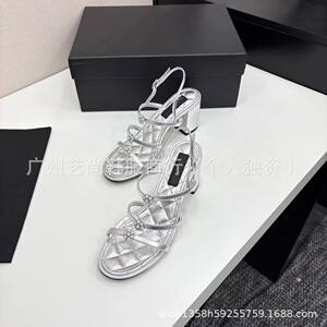 ハイバージョン 2025 新しいスタイルの本革ラウンドトゥフレンチパール厚いヒールワンラインバックルオープントゥハイヒールサンダル女性用