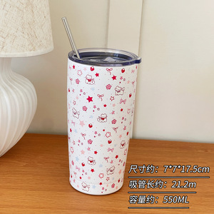 ピンクスターラビット魔法瓶カップ+ステンレスストレートストロー