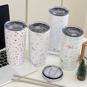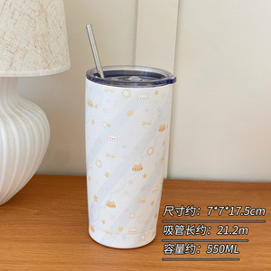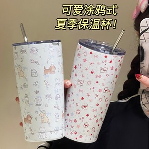 漫画魔法瓶カップ 2025 新しい子犬ステンレス鋼ウォーターカップ大容量ストローカップ便利なコーヒーカップ水カップ