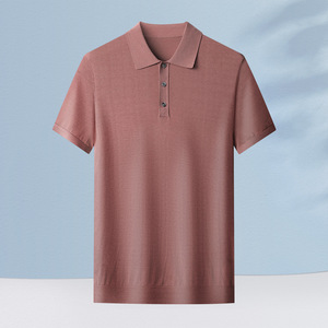 高級メンズ 100 マルベリーシルク半袖 Tシャツ夏薄手ニット半袖シンプルカジュアルシルクポロシャツ男性用