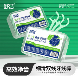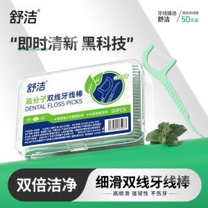 舒洁高分子双线牙线棒成人一次性家用剔牙超细牙签线高弹力50支盒