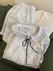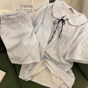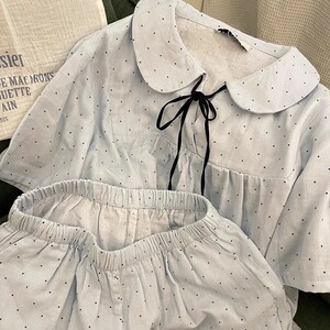 韓国版の高見えする水玉模様のリボンパジャマ女性用夏の新しい半袖ショーツ学生ホームウェアセット