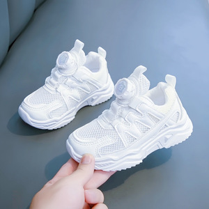 子供の白い靴 2025 夏の新女の子シングルメッシュ通気性スポーツシューズ男の子回転ボタンランニングシューズ
