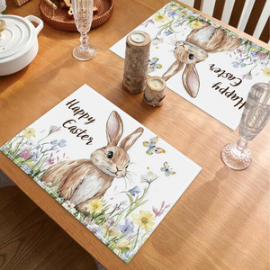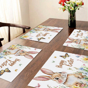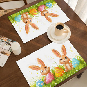 国境を越えた売れ筋イースターリネンプレースマットバニーエッグレストランリビングルーム家の装飾ダイニングテーブル滑り止め断熱マット