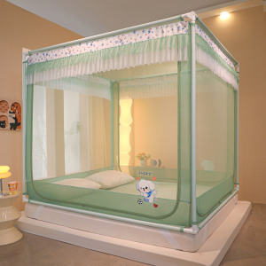 クラスA母子グレードの落下防止蚊帳、3ドアベッドタイプ、防塵、厚みのある、密な家庭用落下防止蚊帳、フルボトム蚊帳