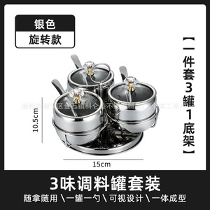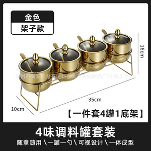 調味料ボックスセット調味料ボトルガラス蓋スプーン付き商業調味料カップ家庭用ラウンド 304 ステンレス鋼調味料瓶