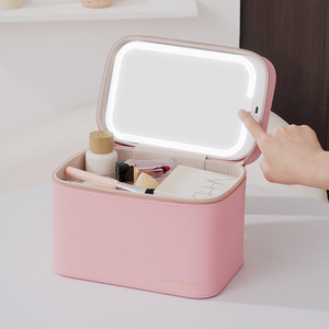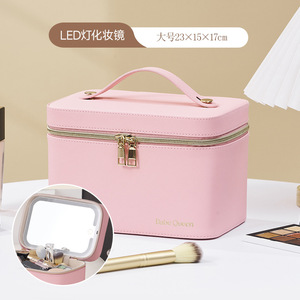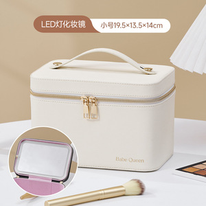 轻便LED带灯化妆包 网红带灯带镜子化妆包专业手提化妆品收纳包