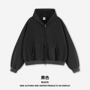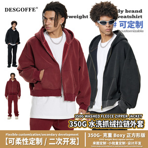 DEメンズ | ボクシーフィットフリースヘビーウォッシュフライドカラージッパージャケットメンズ厚みのあるウォッシュ加工スウェットシャツメンズ
