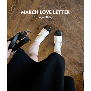 春の新しい気質フレンチメリージェーンレザーシューズ女性用黒と白のカラーブロック厚底シングルシューズハイヒール