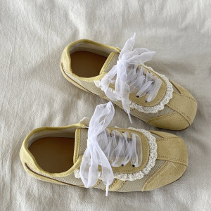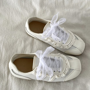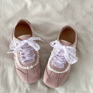 シルバーレースバレエ白靴女性のための 2025 夏の新レトロ厚底道徳トレーニングシューズニッチファッションカジュアルシューズ
