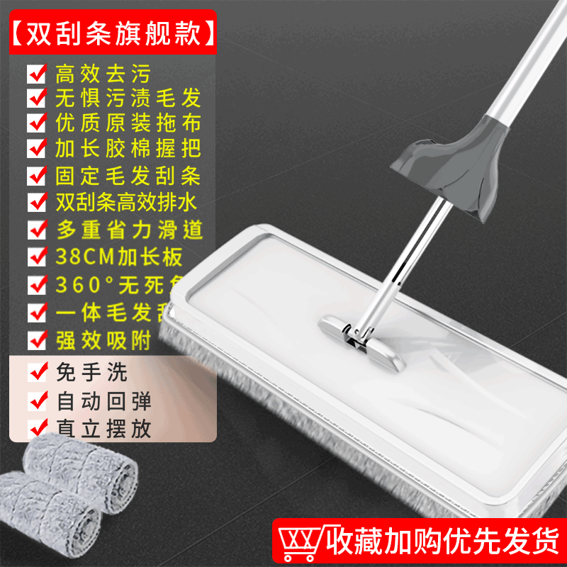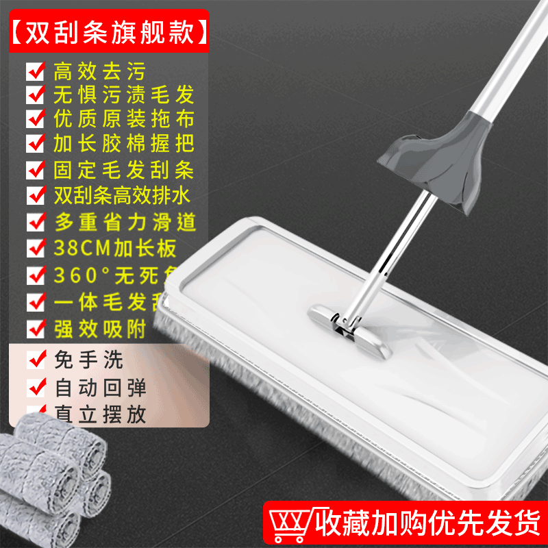 大型モップ、吸水性抜群、手洗い不要、家庭用フラットモップ、掃除が簡単なモップ、床掃除の神器