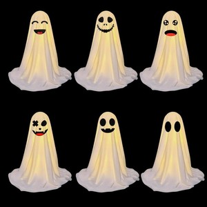 国境を越えたハロウィーンの幽霊テーブルがかわいいテーブルを並べて人形を飾るプラスチックの雰囲気テーブルが店のバーに飾られている