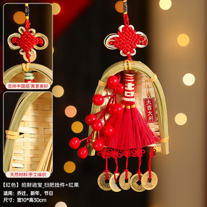 毎日の富の増加 + 富と宝の増加_ちりとりとほうきのペンダント + 赤い果実