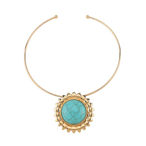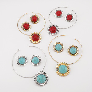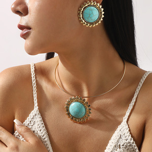 N12651 ZA同型クロスボーダー円形松石モザイク花金属感イヤリング首輪軽贅沢ネックレスピアス