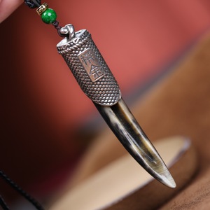 ゴーストブロワー、ゴールデンタッチペンダント、黒いロバの蹄象嵌チベットシルバー盗墓ノート、男女兼用ネックレス、足と歯のアクセサリー