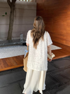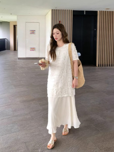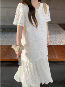 2025年新作夏NAZ少し太った大きいサイズフレンチロマンチックジャカードスプライシングシフォンエレガントドレス
